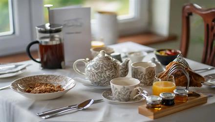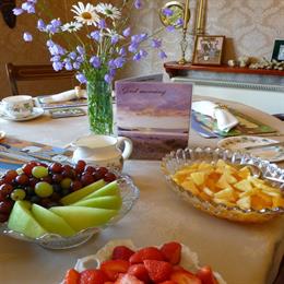 The dining room which shares the same view as the bedroom, is where you can enjoy our cooked scolttish breakfast (we use local produe where possible) We also offer a continental breakfast along with gluten free and vegan options.